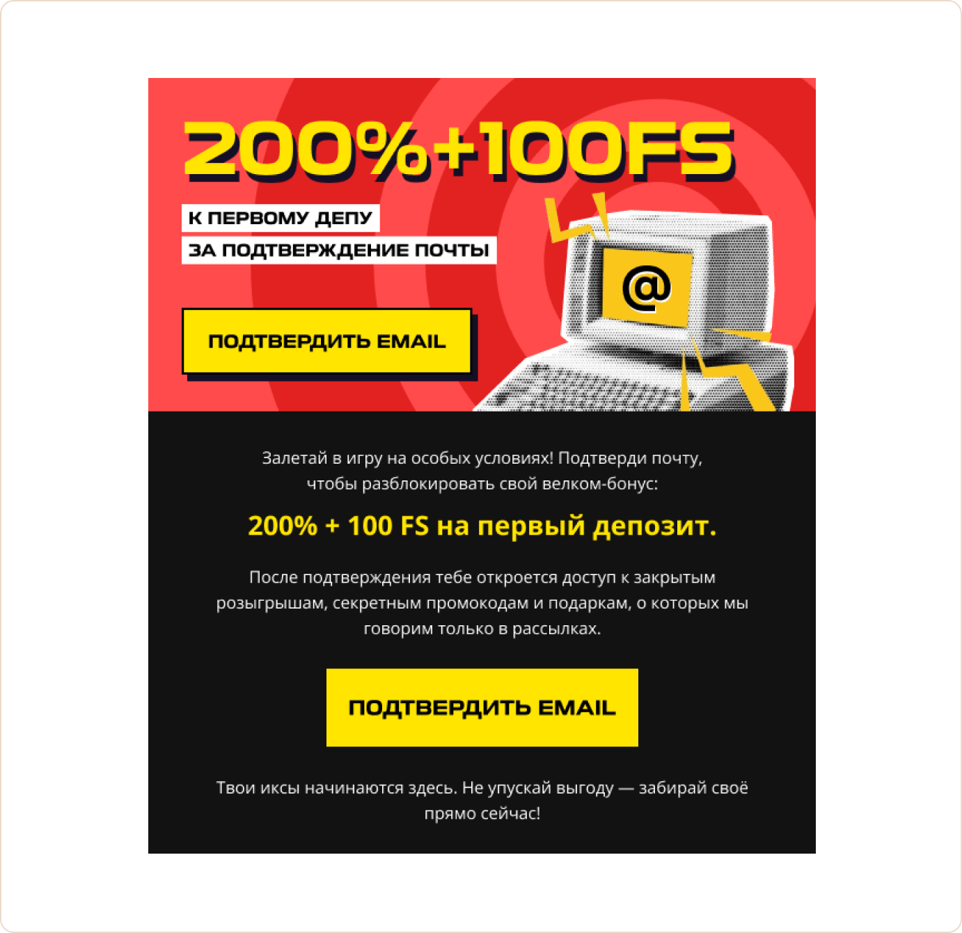 Письмо с просьбой подтвердить имейл для одного из наших проектов. Бонус дан как дополнительная мотивация выполнить этот шаг